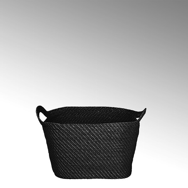 In raffiniertem Materialmix von Kunstfaser u. Naturkordel werden diese vielseitig einsetzbaren Körbe von Hand geflochten.