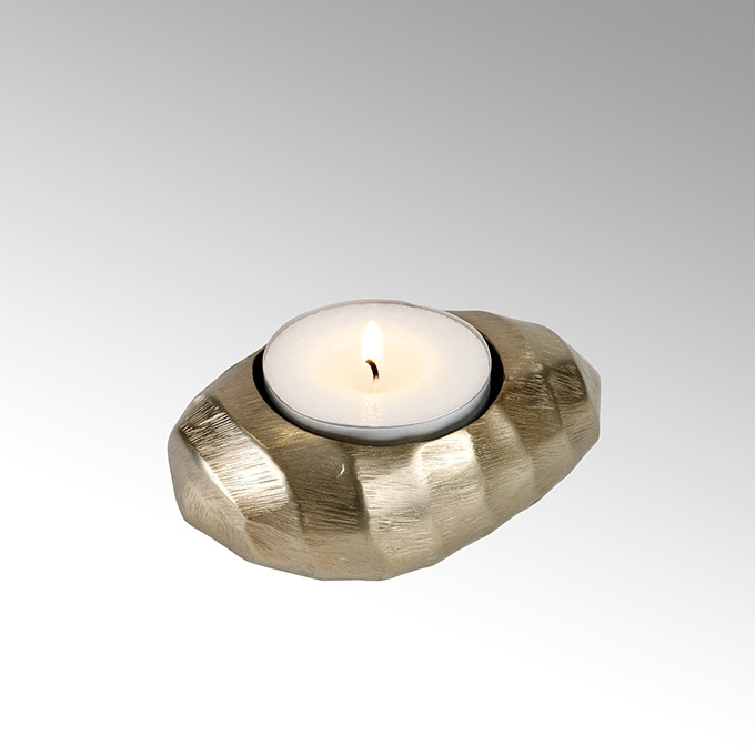Wie kleine handbearbeitete Steine muten die unterschiedlich geformten ovalen Teelichthalter an.