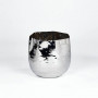 Die Vase / Übertopf Laos wird aus einem besonders feinen Metallblech in eine leicht organisch amorpher Form von Hand getrieben.