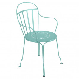 Fermob Sessel Louvre, stapelbar Exklusives patentiertes Modell TECHNISCHE MERKMALE • Struktur aus Stahldraht. • Rückenlehne aus Stahldraht u. Stahlbänder. • Sitzfläche aus perforiertem Stahlblech. • Armlehnen aus Stahldraht. • Hochschutzbehandlung für eine Nutzung im Außenbereich. • UV-Beständig. • Stapelbarkeit: Stuhl x 7 (Stapelhöhe: 140 cm). |