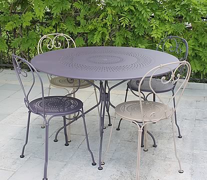 Verspielte Ornamente zieren diese romantisch gestalteten 1900 Gartenmöbel der Extraklasse. Gebogene Formen nach althergebrachter, handwerklicher Schmiede-Tradition, die jedes Möbelstück in ein Unikat verwandeln. 1900 ist eine Fermob Kollektion mit Geschichte, die auf poetische Weise verführt. Die Fermob 1900 Kollektion besteht aus Stuhl, Sessel, Bank, Schaukelsessel und 4 runden Tischen von verschiedenen Tischplatten Durchmessern. Für einen lauen Sommerabend in Ihrem Garten, auf Ihrem Balkon, auf ihrer Terrasse oder in Ihrem Wintergarten bestens geeignet. Die Möbel regen an die Zeit anzuhalten, die Natur zu genießen, entspannt mal wieder einen Roman zu lesen – einfach Ruhe und Sinnlichkeit genießen.