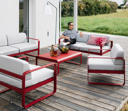 Eine vespielte und praktische Kollektion mit einer sehr geometrischen Linienführung, schönen Rundungen und maximalem Komfort mit Wohlfühl-Garantie. Die Kollektion wird ihrem Namen gerecht, denn sie sprüht vor Lebensfreude, sowohl auf der Terrasse als auch im Garten und sogar als Inneneinrichtung. Mit ihren großzügigen Maßen bietet die Kollektion Bellevie eine große Auswahl an Möglichkeiten, bei denen die niedrigen Möbel für den Wohnbereich sich perfekt mit dem in diversen Ausführungen erhältlichen Essplatz-Ensemble kombinieren lassen. Gartenmöbel mit einer Mischung aus Stahl und Aluminium für eine Kombination aus Stabilität und Leichtigkeit. Es ist ein amüsantes Vergnügen, den Wohnraum im Garten mit Bellevie, in einen wahren Lebensraum zu verwandeln.