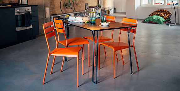 Die Bistro Gartenmöbel Klassiker in exklusiver Qualität. Bistro, charmant und authentisch begeistern die formschönen Klappstühle und Klapptische im typischen „so frenchy“ Look. Die Fermob Gartenmöbel Bistro sind strapazierfähig, robust, langlebig u. ideal geschaffen für den Außenbereich. Die Möbel sind einfach und schnell aufgestellt und wieder weggeräumt, deshalb auch ideal für den kleinen Balkon oder die kleine Terrasse. Die raffinierte, einfache und beschwingte Kollektion Fermob Bistro besteht aus 4 verschieden Klappstuhl-Modellen, 10 kombinierbaren Tischformen und -größen, einem Liegestuhl, einem Balkontisch und einem Barhocker mit zugehörigem Bartisch. Um es kurz in Worte zu fassen, Bistro begeistert Sie heute und jeden Tag.