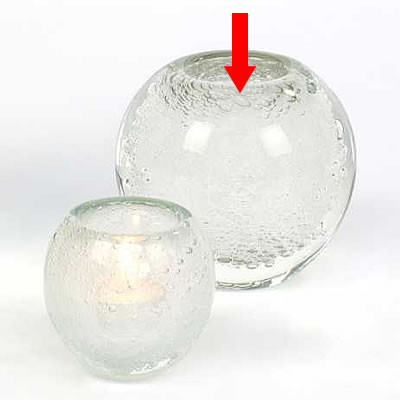 Der Einschluß von diesen hunderten Luftbläschen macht jedes Windlicht / Vase zu einem Unikat.