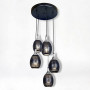 Die Hängelampe hat fünf Schirme aus Soap Stone und eine Montur aus Aluminium.