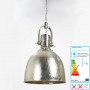 Montur und Aufhängung sind bei dieser großen Version silber glänzend, der Leuchtenschirm ist von Hand getrieben und mit einer