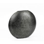 Eine  flache, linsenförmige Vase mit fein ziselierter Oberfläche und einem matt, metallischen Glanz von Graphit.