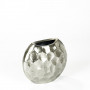 Eine  flache, linsenförmige Vase / Gefäß mit grob segmentierter Oberfläche u. einem matt, metallischen Glanz von Silber.