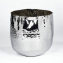 Die Vase / Übertopf Laos wird aus einem besonders feinen Metallblech in eine leicht organisch amorpher Form von Hand getrieben.