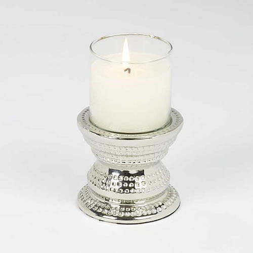 Windlicht-Materialien: Sockel aus Aluminium, gehämmert und vernickelt