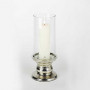 Dem Windlicht Makani gibt die Kombination des handwerklich gehämmerten Metallfußes mit dem klaren Glaszylinder besondere Eleganz. Der Fuß des Windlichts Makani ist aus gegossenem Aluminium hochglänzend vernickelt.