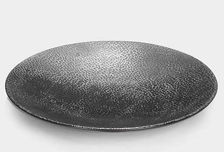 Der Kuchenteller Kaori aus Steinzeug mit der markanten Rochen-Optik (Schwarz metallic). Lambert zeitlos schönes Steinzeug.