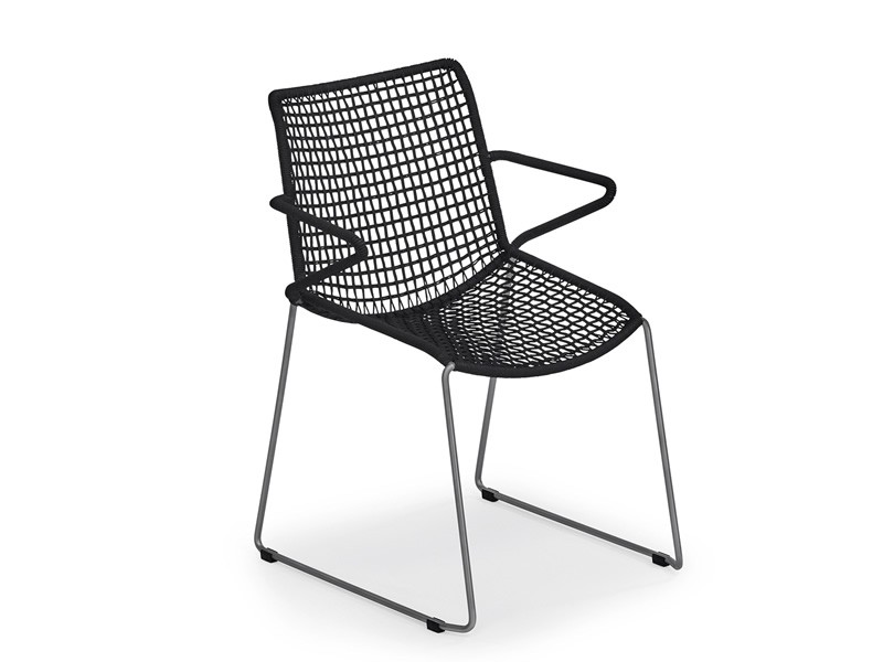 Weißhäupl Sessel Slope, mit Armlehnen, Edelstahl / Kordelgeflecht, stapelbar