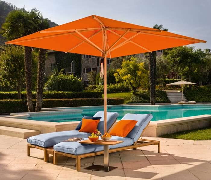 • Das Schirm-Gestell wird ausschließlich aus oberflächenimprägniertem Holz gefertigt.