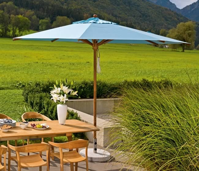 • Streben, Schirmnaben und Schirmstamm bestehen aus massivem, oberflächenimprägniertem Teak.