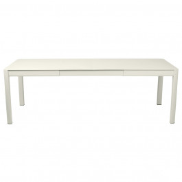Fermob Tisch Ribambelle, mit 2 Einlegeplatten, für 10 Personen DESIGN BY STUDIO FERMOB Exklusives patentiertes Modell TECHNISCHE MERKMALE • Struktur u. Tischplatte aus Aluminium. • Teleskopsystem mit Mechanismus auf Edelstahlkugellagern. • Aufbewahrungsfach für die Verlängerung unter der Tischplatte. • Tischkeile für die Überwinterung. • Demontierbar. • Korrosionsschutzindex (IPAC) 10. • UV-Beständig. |