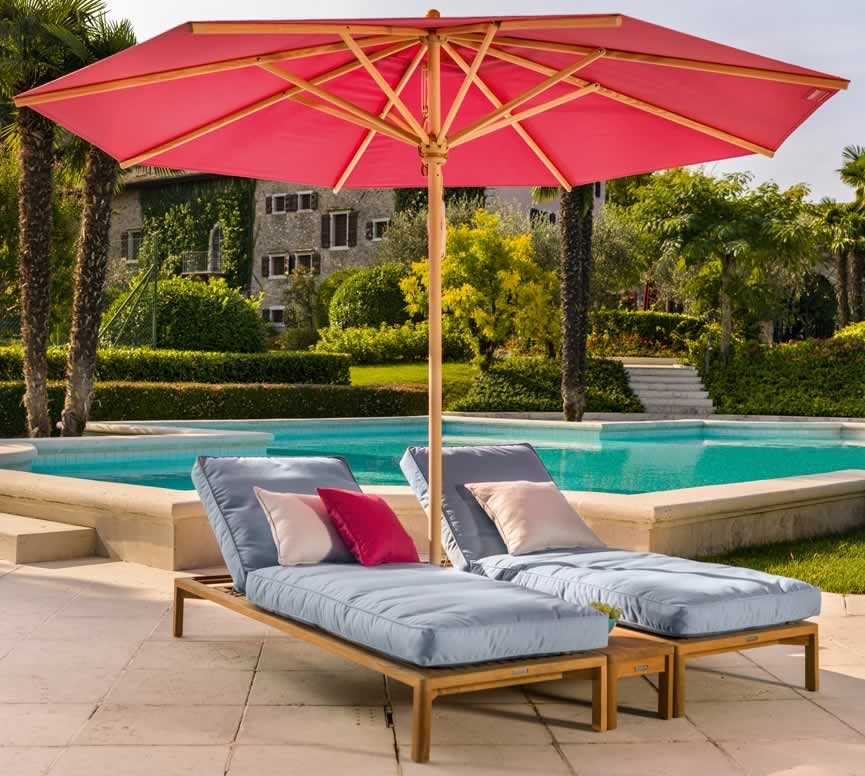 • Der Anstelltisch kann wahlweise mit einer Bohrung, für Ihren Sonnenschirm, in der Mitte oder an der Seite ausgestattet werden.