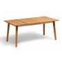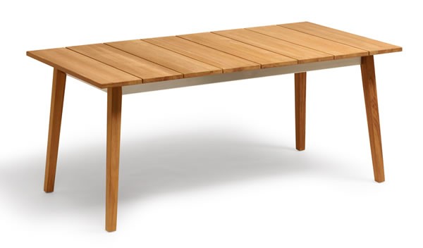 Der elegante Tisch Wipp aus bestem, massivem Teakholz eignet sich universell sowohl für drinnen als auch für draußen.