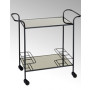 Die stabile u. doch filigrane Metallrohrkonstruktion ist seidenmatt – schwarz, pulverbeschichtet u. trägt zwei getönte Rauchglas-Spiegel. Die 5 mm starken Flächen tragen jeweils bis zu 25 Kg Gewicht. Die untere Ebene verfügt über zwei praktische Flaschenhalter, so dass die wertvollen Whiskeys o. Champagner nicht vom Wagen rutschen können.