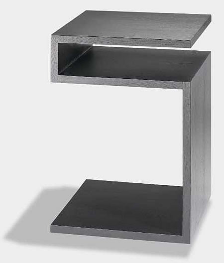 Geradliniges Design mit scheinbar frei schwebenden Ablage-Flächen - so präsentiert sich der Beistelltisch Deposito, das z-förmige Beistellmöbel aus massiver Eiche.