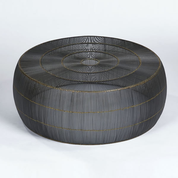 Der Couchtisch Obhan besteht aus starkem Eisendraht u. wird in mühevoller Detailarbeit zusammengesetzt.