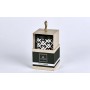 Die Duftkerze Ebba befindet sich in einem Gefäße aus Keramik auf das ein Muster mit einem aufwendigen Ätzverfahren graviert wurde.