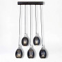 Die Hängelampe hat fünf Schirme aus Soap Stone und eine Montur aus Aluminium.