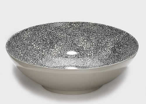 Die große Schale Kaori aus Steinzeug mit der markanten Krakelee-Optik (Weiß / Schwarz). Lambert zeitlos schönes Steinzeug.