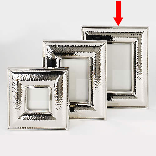 Der Bilderrahmen Cuadro ist aus handgetriebem, vernickeltem Stahl. Der breite, aufwendig bombierte Rahmen umschließt das Bild und lässt es fürstlich wirken und zum kleinen Kunstwerk werden.