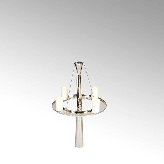 Ein runder Festkranzaufsatz aus Edelstahl für den mittleren Kerzenleuchter Taza, Höhe: 100 cm.