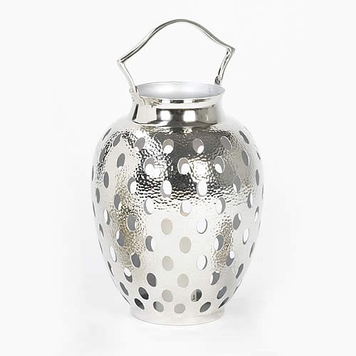 Windlicht-Materialien: Metall, gehämmert und vernickelt.