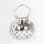 Die elegante bauchige Form des Winlichtes Destello ist mit runden Durchbrüchen versehen, die das Kerzenlicht durchschimmern lassen. Jedes Loch wird einzelnen ausgeschnitten und nachpoliert, bevor das Windlicht im zweiten Schritt vernickelt wird.