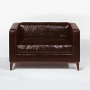 Durch die fast zierliche Gestalt schwankt die Funktion dieses Ledermöbels zwischen einem breiten