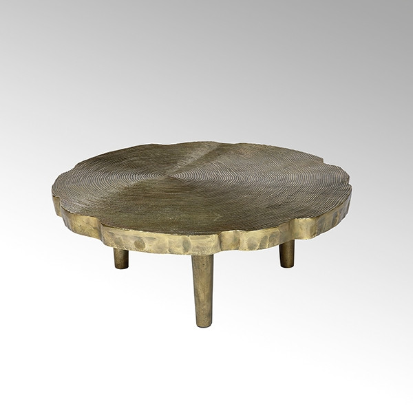 Toshiko ist ein runder, niedriger und sehr dekorativer Cochtisch aus Aluminium Sandguss.