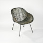 Die sanft ausgerundete Sitzschale wird aus durchgefärbtem Bambussplit auf das grazile Metalluntergestell geflochten.