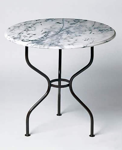 Der runde Marmortisch Tete a Tete mit weißer Marmorplatte vereint durch seine Materialkombination