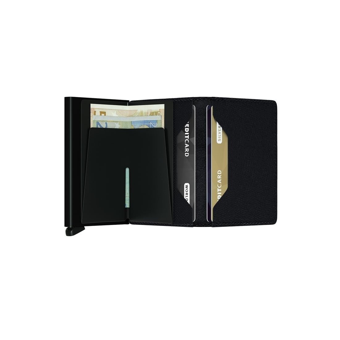 - patentierter Mechanismus für sofortigen Zugriff auf Ihre Karten mit einer einzigen Bewegung.