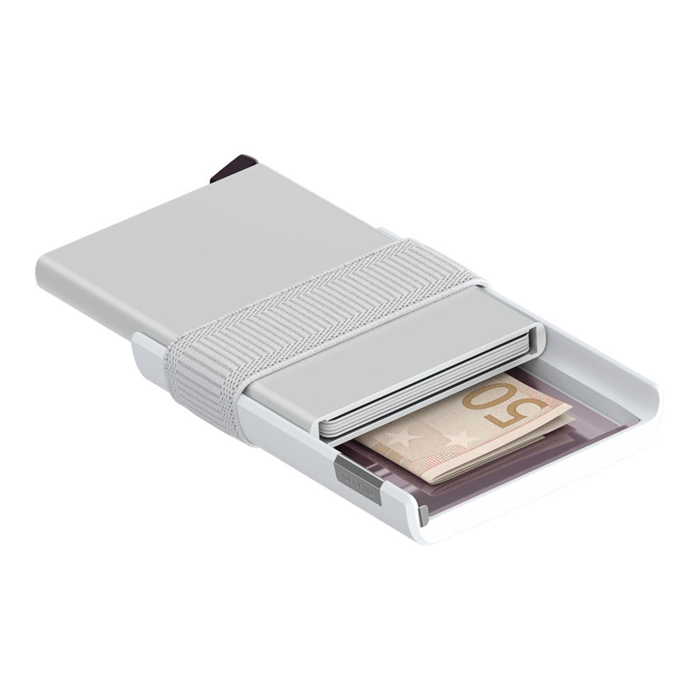 Der Cardprotector und der Cardslide werden durch ein Moneyband zusammengehalten.
