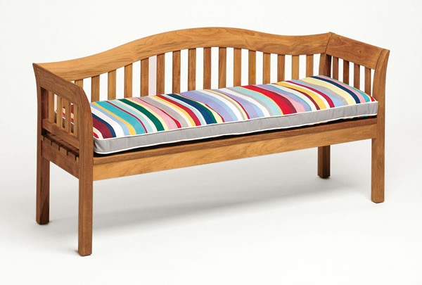 • Die Bank kann zusätzlich mit einem Sitzpolster in verschiedenen Stoffen und in diversen Farben ausgestattet werden. • Die Sitzpolster besitzen eine herausnehmbare Faserkugelfüllung.
