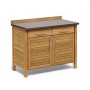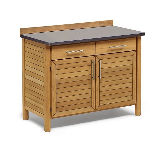 Das Pflanzboard mit 2 Schüben und 1 Fachboden der Outdoor-Schrankkollektion Deck, welche nicht nur als zuverlässige Assistenten, wenn es ums Verstauen geht dienen, sondern neben aller gebotenen Funktionalität auch Schmuckstücke sind, die an jedem Ort die Blicke auf sich ziehen. Alle Modelle fertigen wir aus massivem, unbehandeltem Teak bzw. Teakdeck (Teak mit Silikat verfugt). Bei den Fachböden verwenden wir verzinktes und mattsilber pulverbeschichtetes Stahlblech, bei den Schubkastenböden und der Tischplatte kommt Edelstahlblech zum Einsatz.
