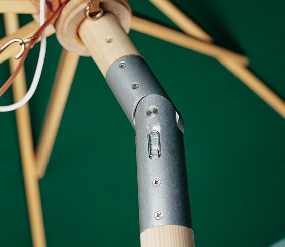 • Dieser Schirm kann zudem mit einem Flaschenzug und einem Knickmechanismus ausgerüstet werden.